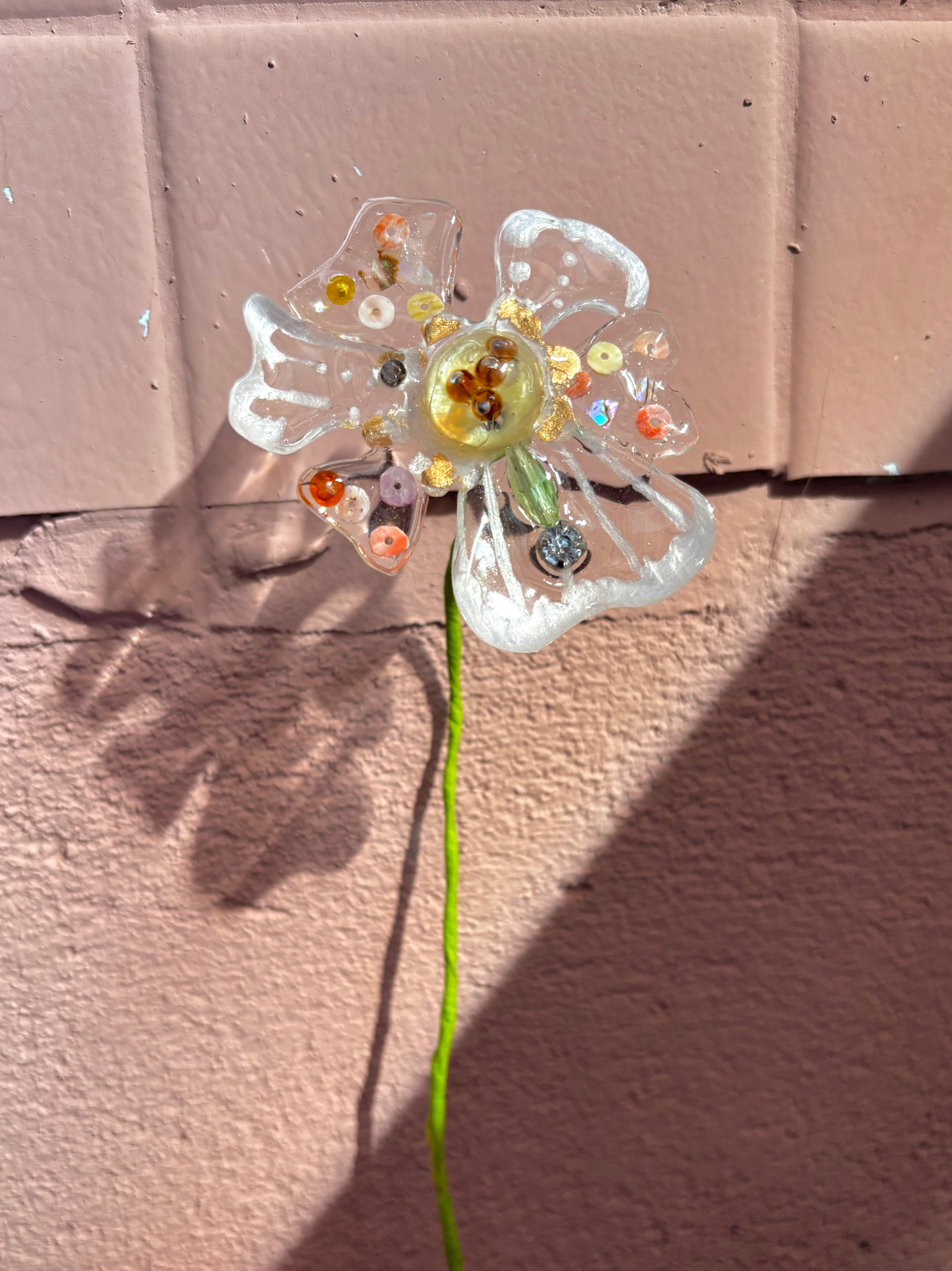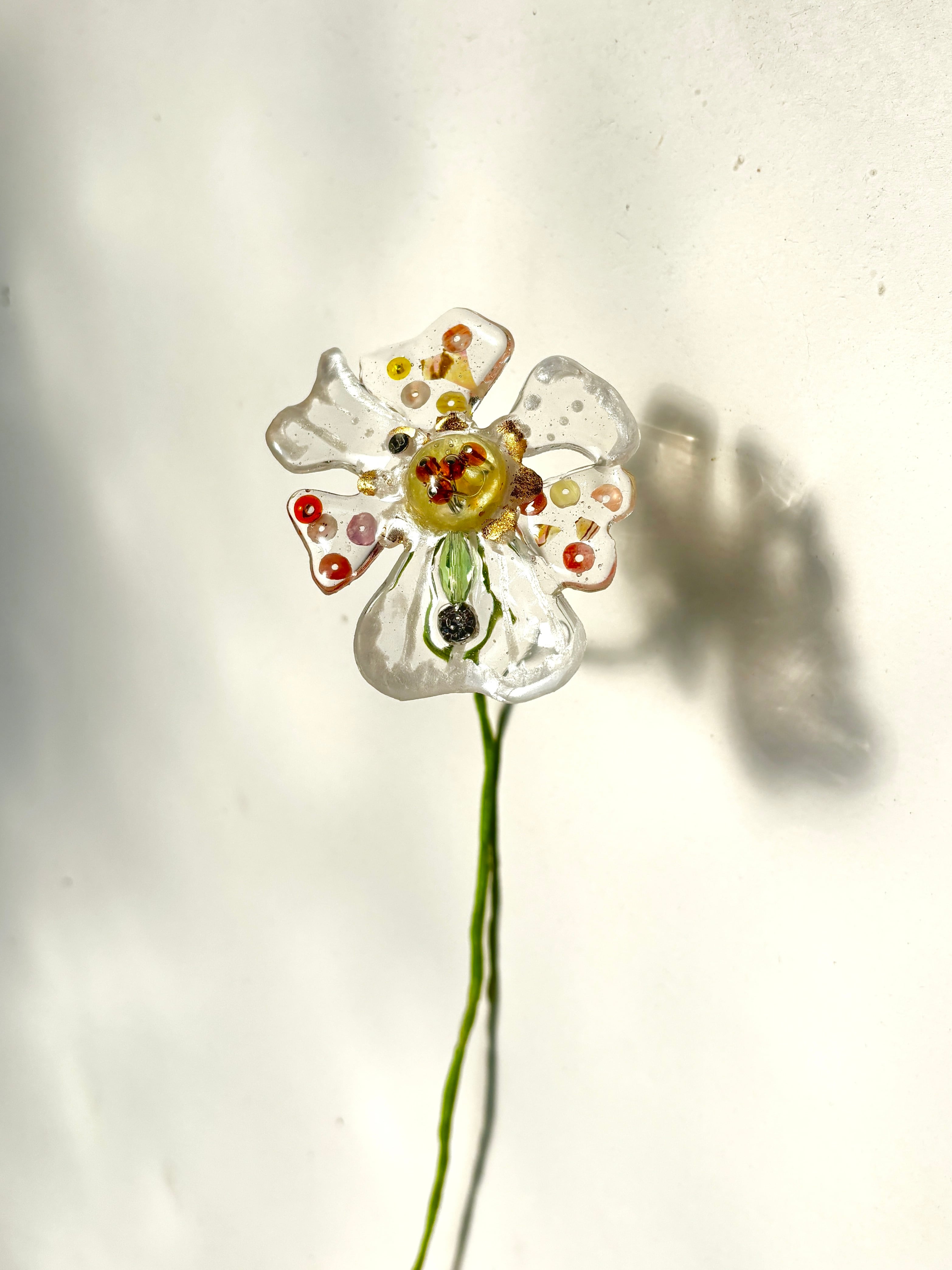 お花素材: 樹脂(レジン)、着色顔料、装飾類(ビーズ、螺鈿、パール等)